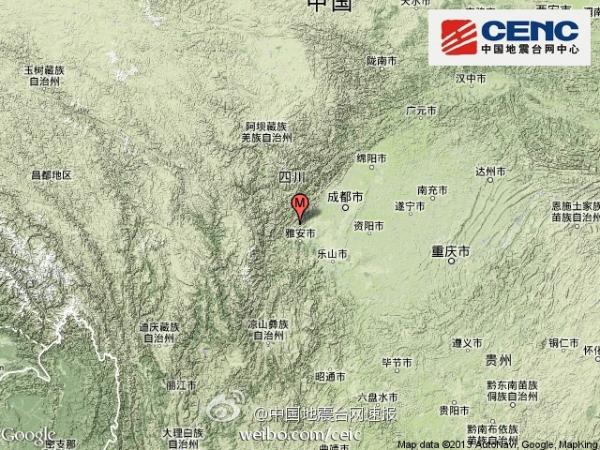 据中国地震台网速报 今天上午08:02分,四川省雅安市雨城区附近(北纬30.1度,东经103.0度)发生7级地震,成都、重庆、西安、贵阳等地有不同程度震感。
